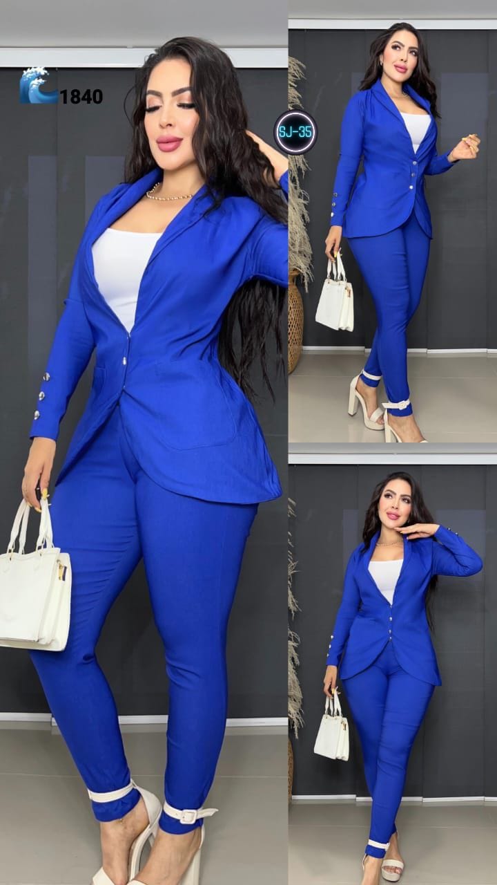 Un elegante conjunto compuesto por un blazer estructurado, un pantalón entallado y una camiseta interior básica. Este diseño está creado para realzar la figura y proyectar seguridad, elegancia y presencia.